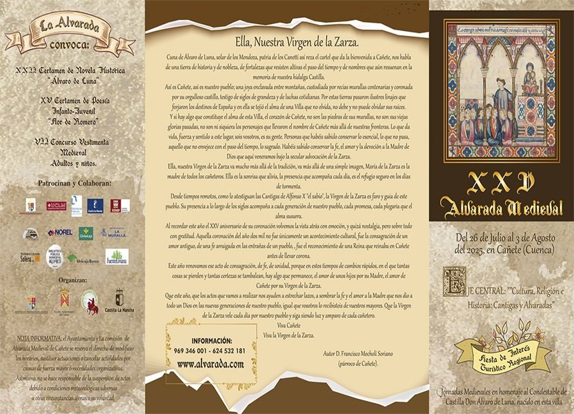 Cada año la noble villa de Cañete (en la provincia de Cuenca) se transforma en un escenario vibrante de historia y tradición durante la celebración de La Alvarada, una fiesta que rinde homenaje al esplendor medieval de la región y que en esta ocasión se celebra entre los días 26 de julio y 3 de agosto. Este evento, declarado de Interés Turístico Regional, no sólo conmemora el legado de Don Álvaro de Luna (figura clave del siglo XIV y que nació en estas tierras), sino que también invita a sus habitantes y visitantes a un viaje inmersivo hacia el pasado glorioso de esta localidad.
